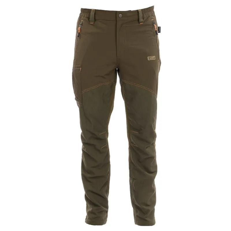 Vystužené panely pre lepšiu ochranu a odolnosť. Ľahká, priedušná, elastická a odolná rip-stop tkanina so vystuženou nylonovou tkaninou v prednej a zadnej časti nohavíc. Konštrukcia so 4 vreckami: 2 zipsy vpredu, 1 bočné vrecko na nákladné vrecká a 1 zadné vrecko na zips.