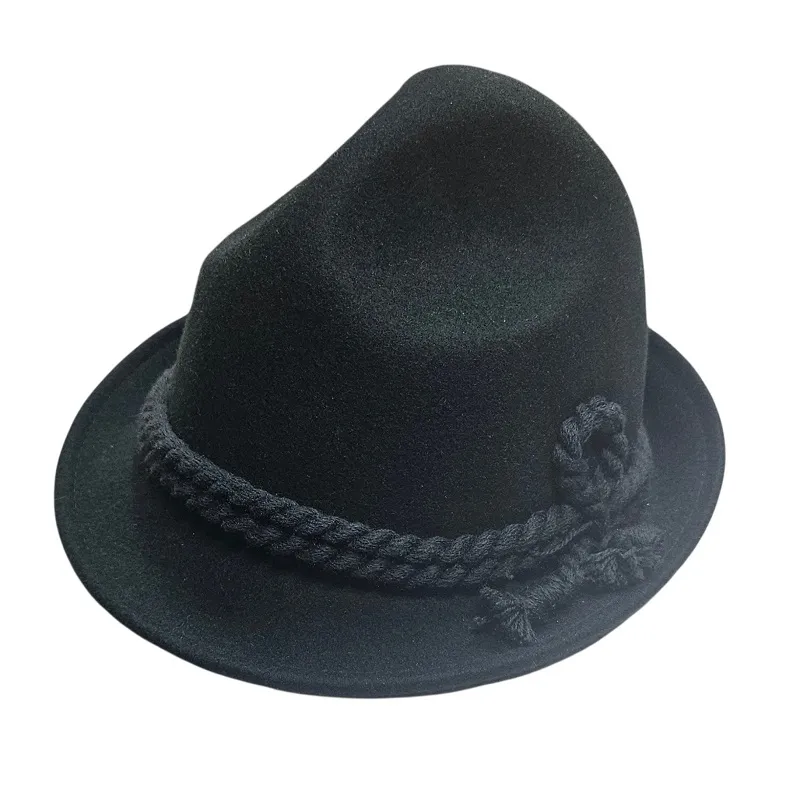 Krásny poľovnícky klobúk vyrobený z vysoko kvalitnej vlny. Klobúk má ozdobný pásik.