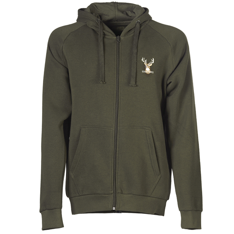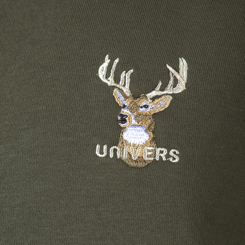 Pohodlná 300 gramová mikina s kapucňou, navrhnutá s výšivkou jeleňa.